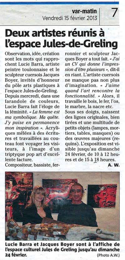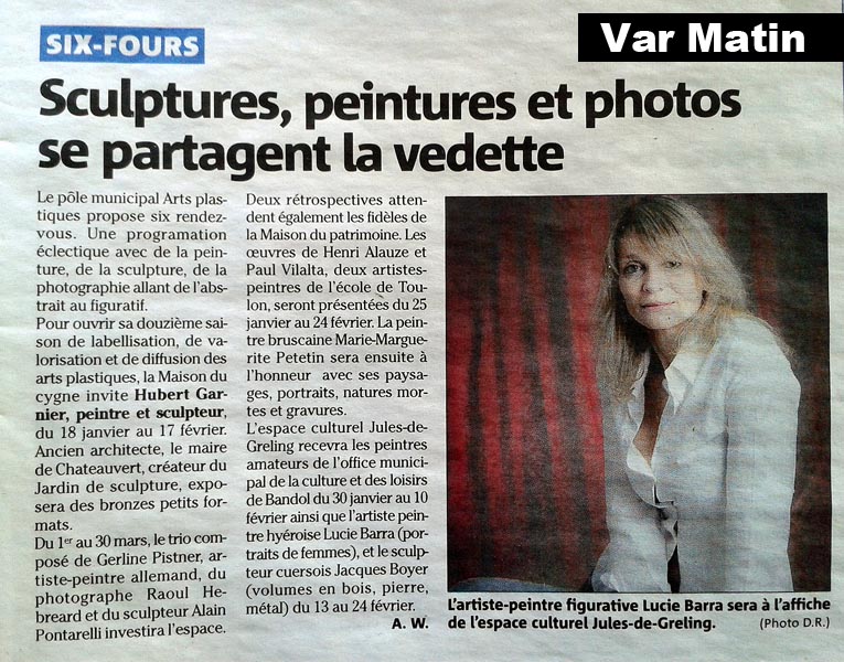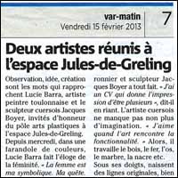 Espace Jules de Greling, Le Brusc Six-Fours (83) – Exposition Lucie Barra (peintures) et Jacques Boyer (sculptures)